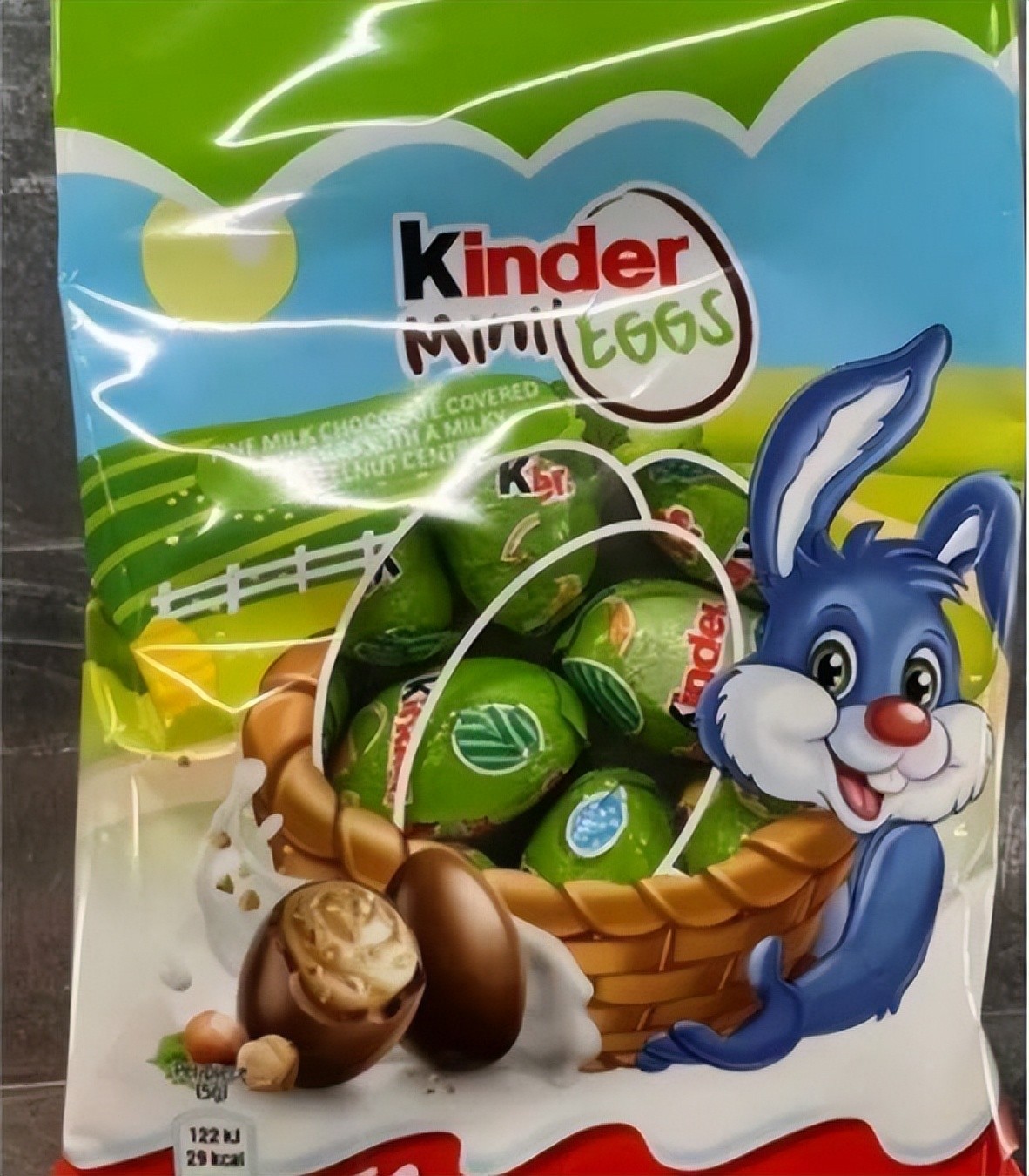 所有包装的Kinder Schokobons、100克装的Kinder Surprise Maxi 、75克装的Kinder Mini Eggs 以及150克装的Kinder Egg Hunt Kit。