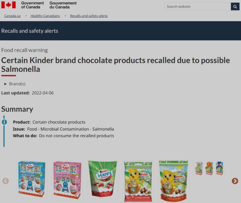 但根据加拿大卫生部官网消息由于受到沙门氏菌感染现有大批健达奇趣蛋被迫全球召回!
