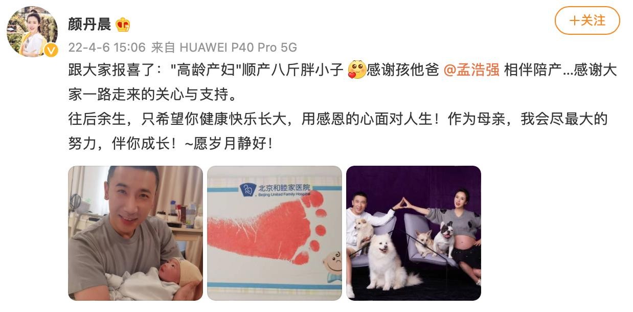 虽然颜丹晨已经是44岁的高龄产妇,但是,幸运的是,生产的时候,十分顺利。据悉,颜丹晨生了个八斤重的大胖小子,最令人羡慕的是,人家还是顺产。不得不说,颜丹晨也太令人羡慕了。