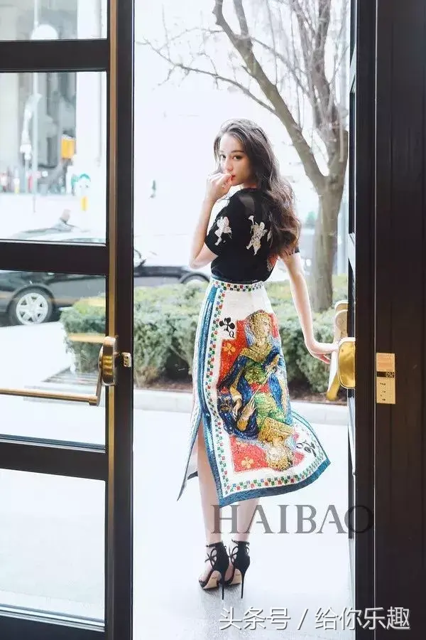 转眼间又变换为高冷模样,不同于节目中的可爱邻家少女,搭配杜嘉班纳 (Dolce&Gabbana) 的印花裙更加优雅高贵,妥妥的女神范。
