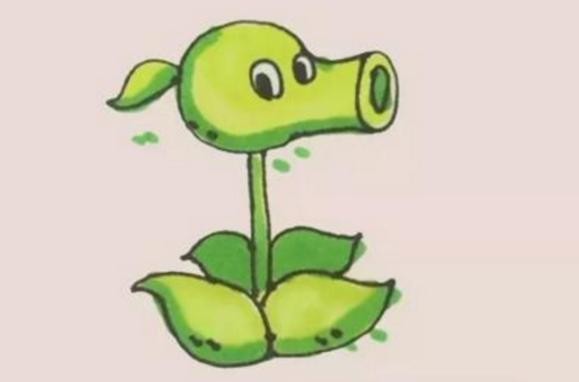第六步:涂上五颜六色的水彩,一个卡通的豌豆射手就诞生啦