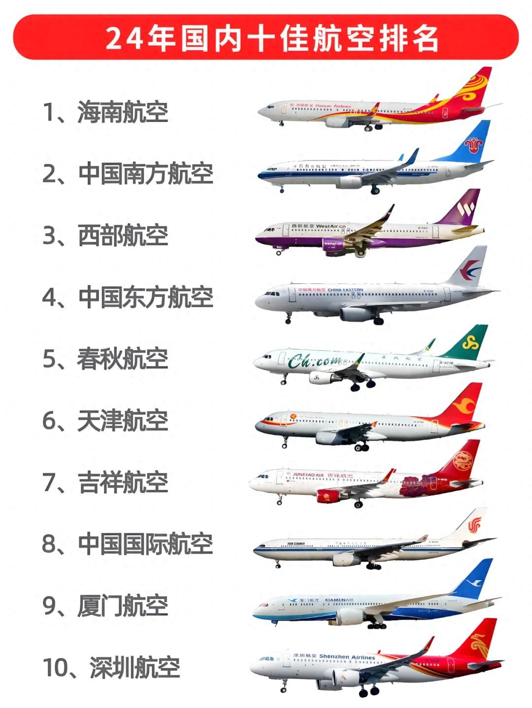 近日,网上公布了2024年中国TOP10航空公司排名,前十依次是: