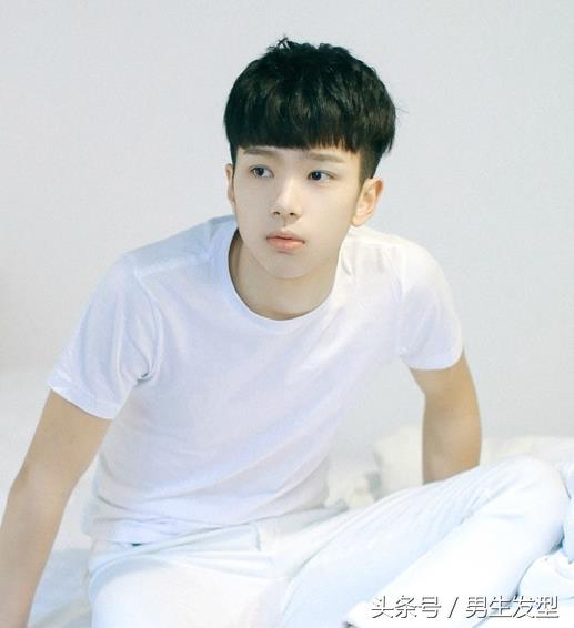 锅盖头发型非常适合在校的男同学,厚重的刘海刚刚剪到眉毛的上面,整个人的气质显得非常呆萌可爱。