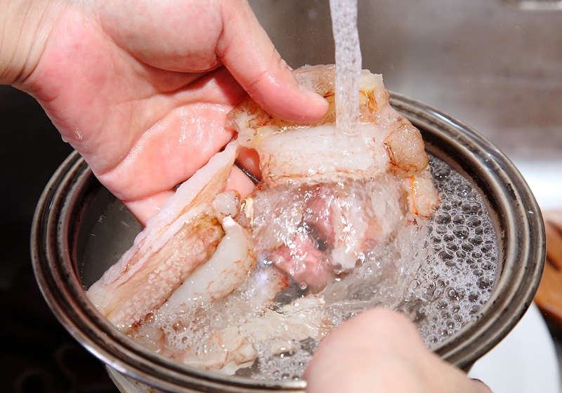 Tips:洗蟹肉管时,注意是否有残留的蟹壳,需一一挑除,以免不小心卡到喉咙。