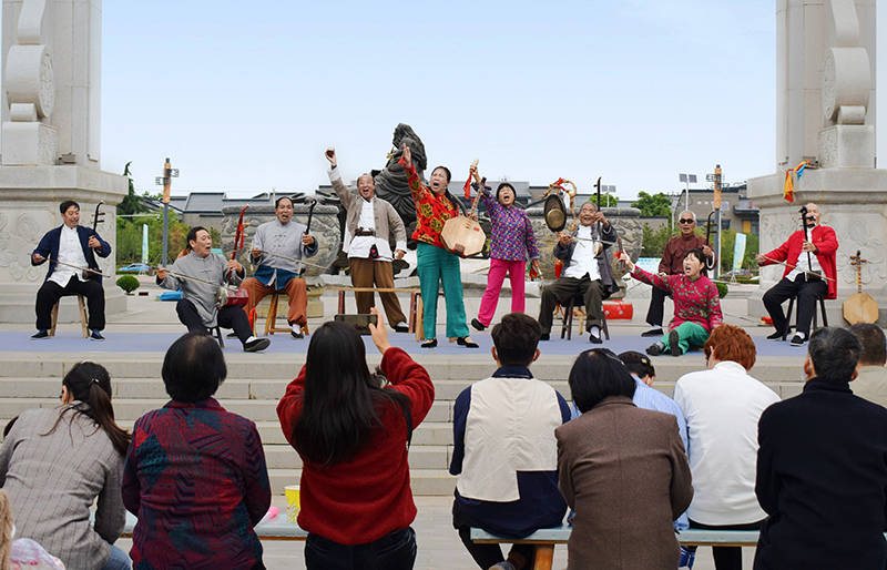 赏景后,福地池广场华阴老腔一声吼的豪情与传承,吸引围观。顺带给大伙科普一下,华阴老腔2006年被列入首批国家级非物质文化遗产名录。