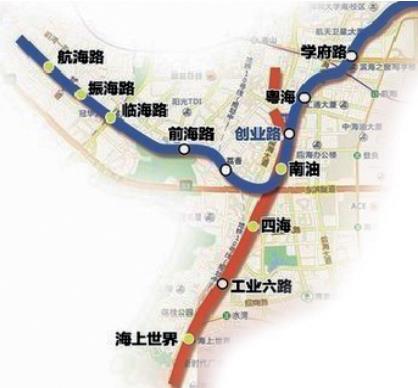 站点一览:航海路——振海路站——临海路站——前海路站——荔香站——南油站——粤海站——学府路站——深大东站——科技城站