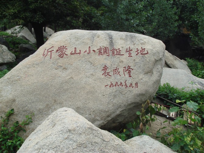 并请原抗大一分校文工团团长、国家农业机械部副部长袁成隆同志题写了“沂蒙山小调诞生地”纪念碑名,词作者阮若珊同志题写了“深深怀念沂蒙好地方”,分别镌刻在白石屋村旁的巨形花岗石上。