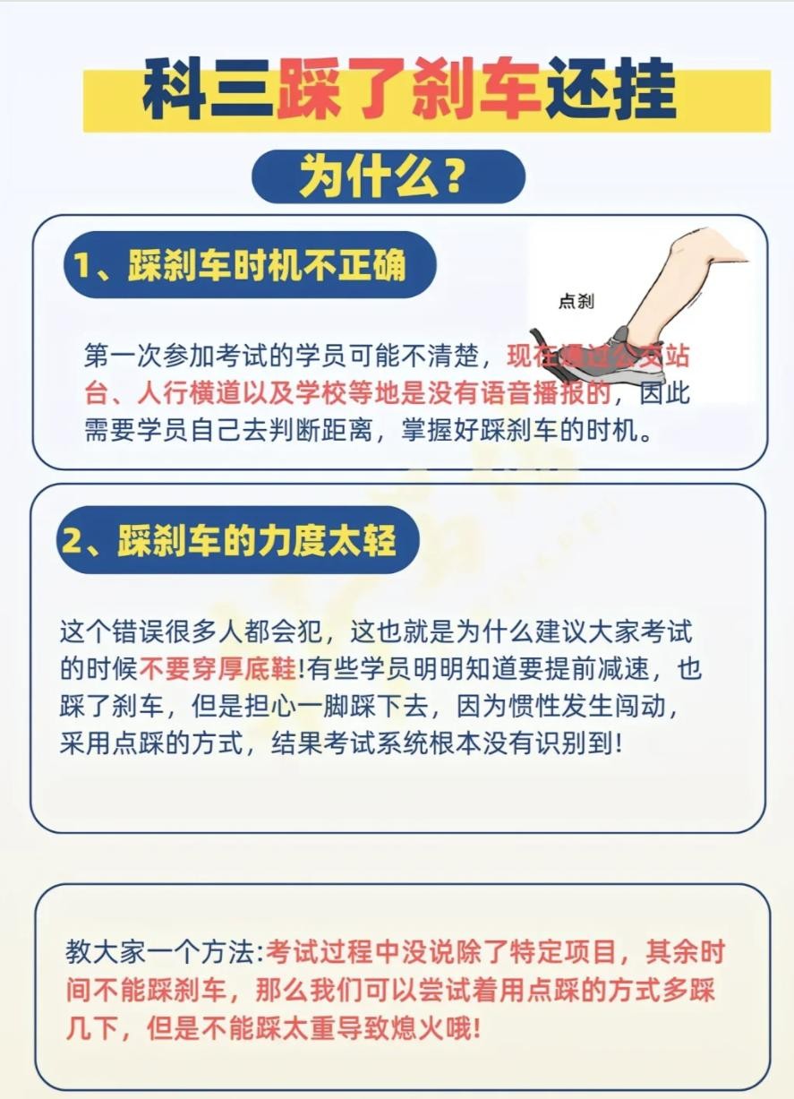 科目三踩了刹车还挂科为什么呢?