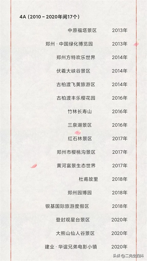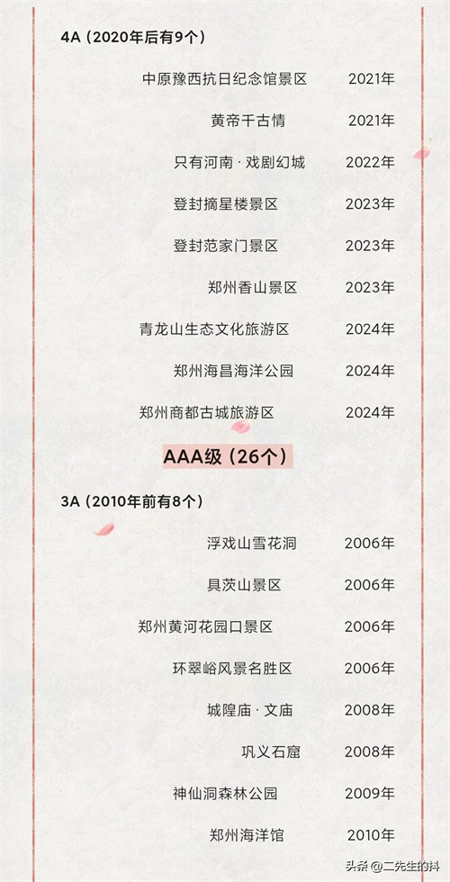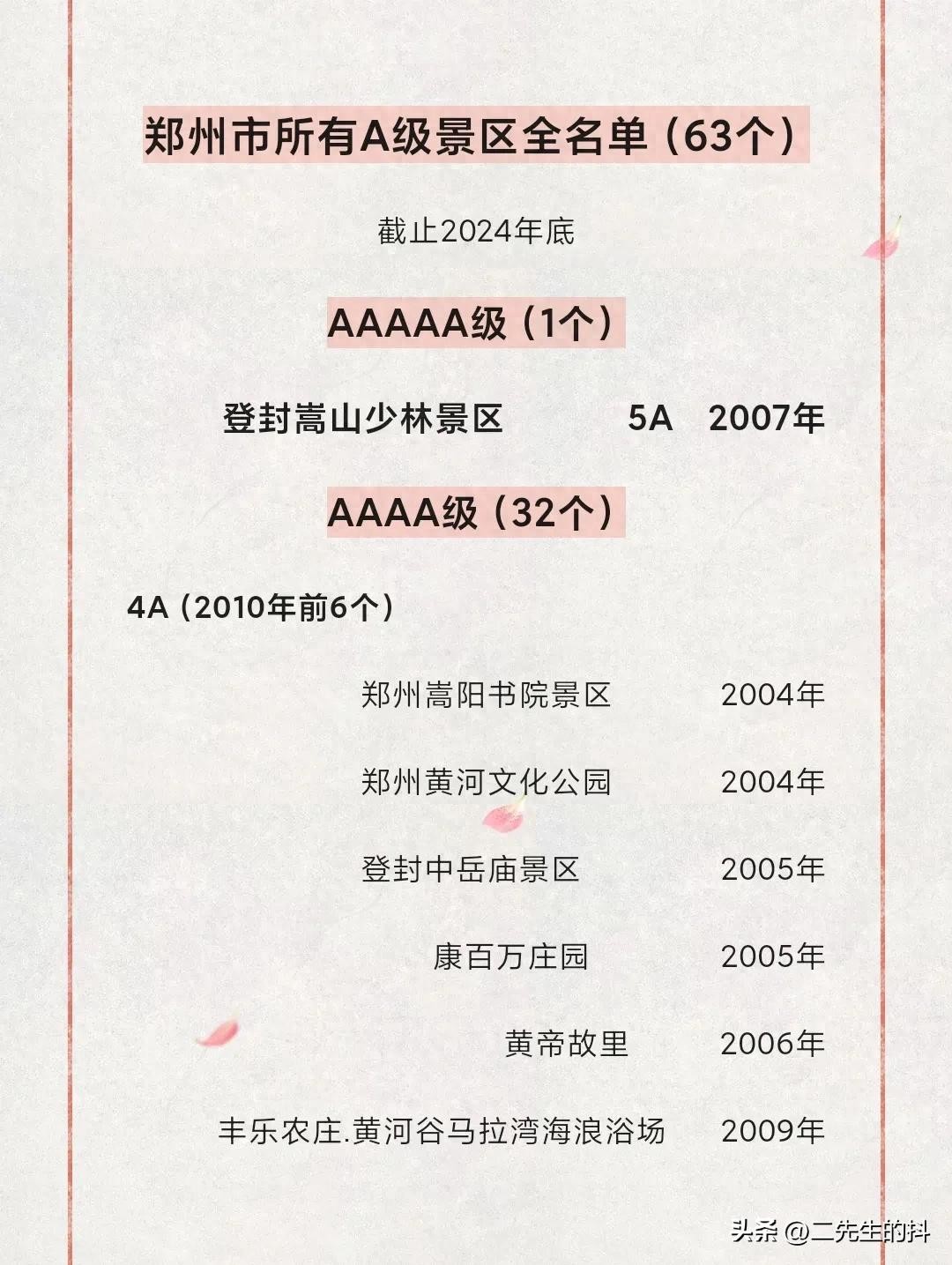 大家比较熟悉的方特,只有河南,银基,电影小镇都是4A级景区!共有32个之多!嵩阳书院,中原福塔,园博园也在4A之列!