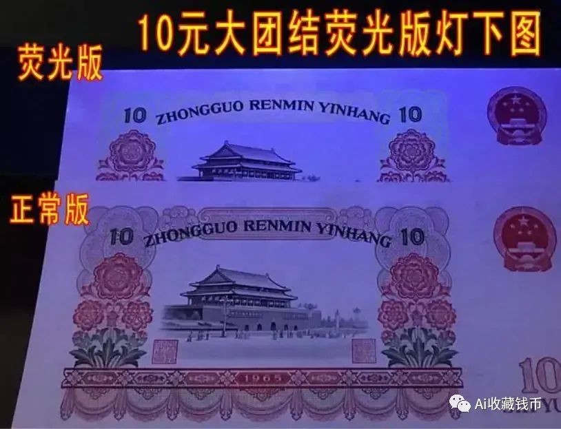 此外,还存在一种稀缺的荧光版纸币,有花开富贵,花好月圆等。由于发行数量较少,其收藏价值普遍较高,是普通的2至3倍。荧光版纸币可以使用紫光灯照射来进行区分。然而,在收藏过程中,不论是二罗马版还是三罗马版的10元大团结,收藏者都需要仔细区分和鉴别纸币的真伪以及品相的好坏。只有选择品相好的纸币,才能使得收藏的空间更加广阔。