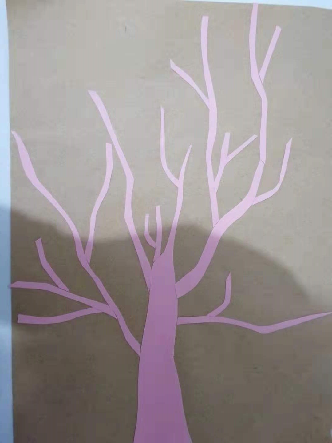 贴好花朵之后再用绿色卡纸剪些花朵的枝条和叶子。