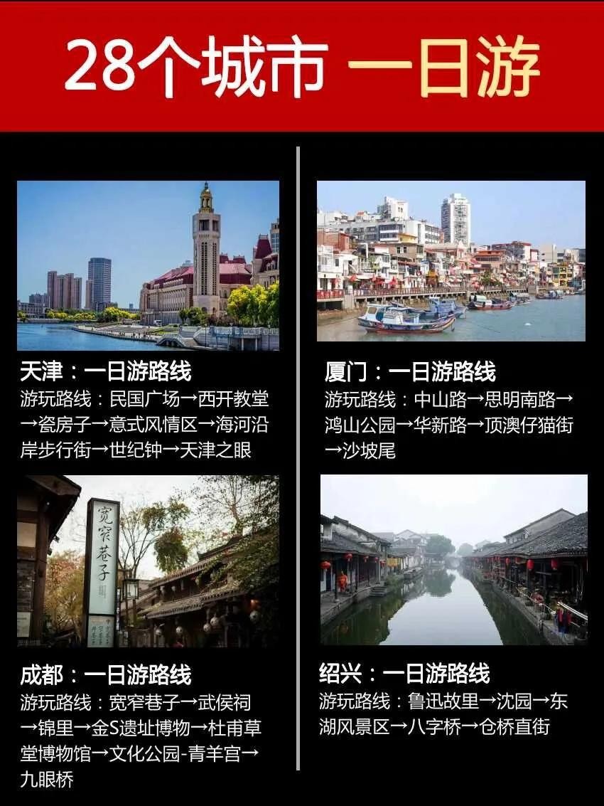 一、28座旅游城市-经典1日游路线