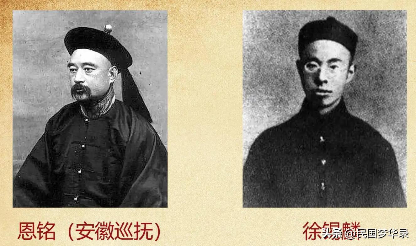 光复会成员徐锡麟和秋瑾领导。徐锡麟在安徽安庆策划、组织刺杀安徽巡抚恩铭,并率领学生军起义,攻占军械所,激战4小时后,起义失败。徐锡麟等被捕,慷慨就义。“鉴湖女侠”秋瑾闻讯,拒绝友人劝告,坚持留守绍兴。后被捕,从容就义于绍兴轩亭口,年仅32岁。