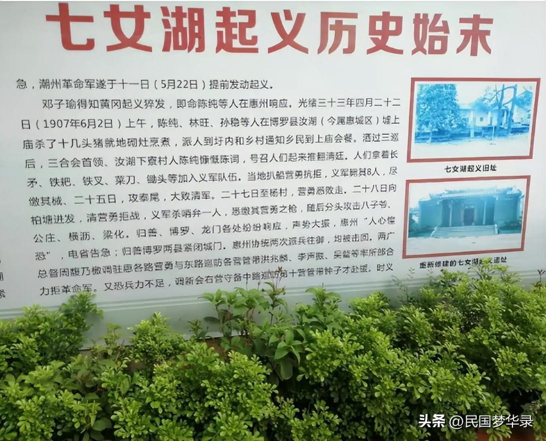 孙中山派邓子瑜等到广东惠州发动起义,以响应黄冈起义。义军在惠州七女湖起事,连胜清军。后因黄冈起义失败,孤立无援,遂解散队伍。
