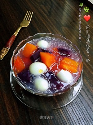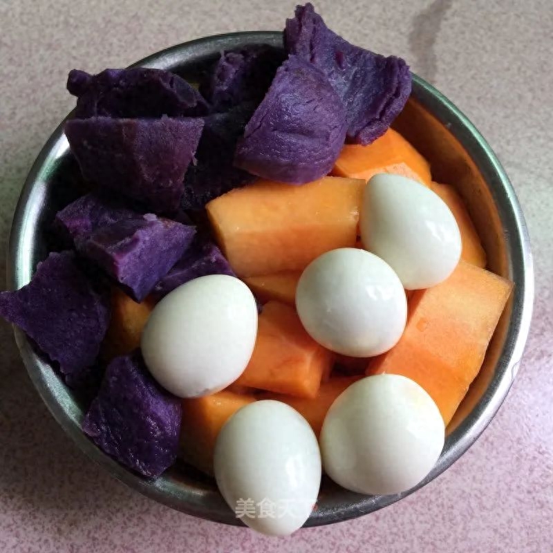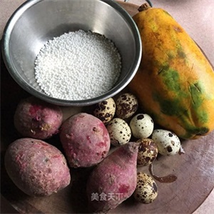 木瓜1个紫色红薯1个西米50克鹌鹑蛋8颗(随意)白糖适量水适量
