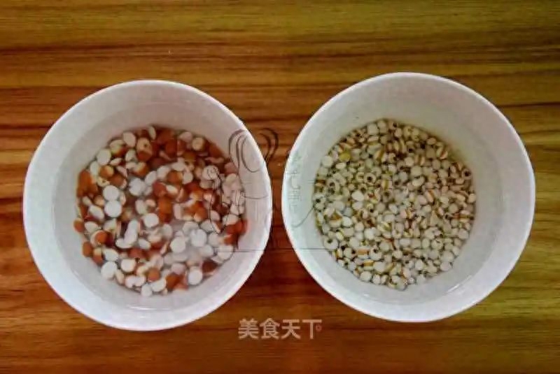 2. 薏米、芡实洗净浸泡1-2个小时。