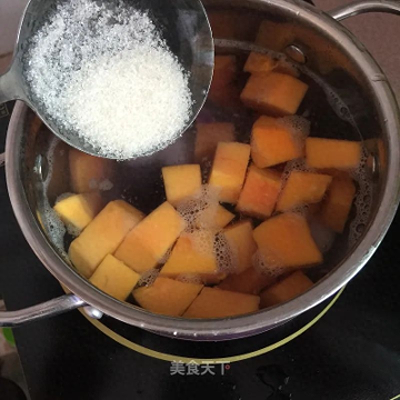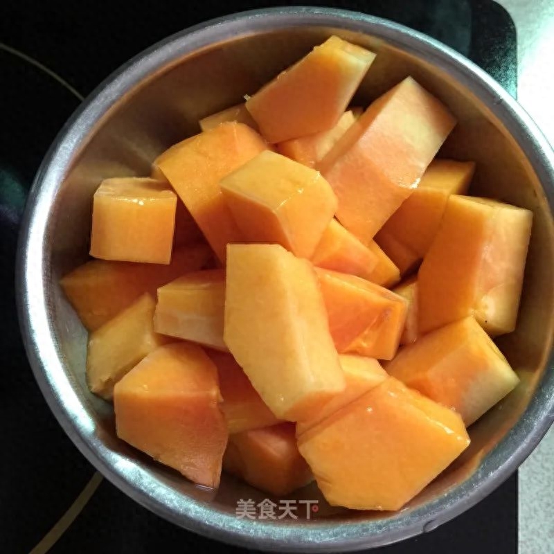 7. 锅里再放入适量水烧开,先放入木瓜和白糖煮开。