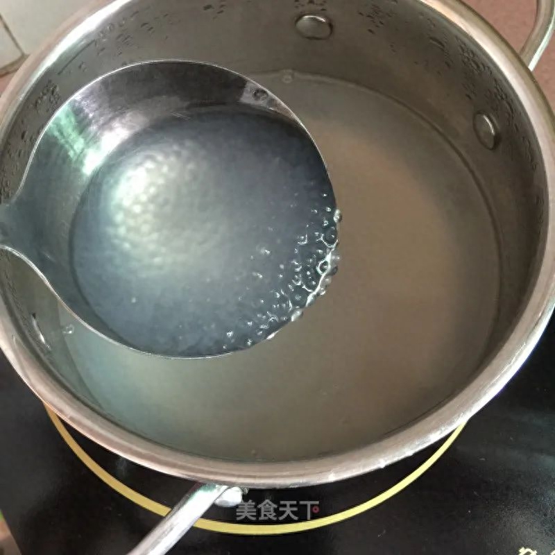 6. 虚焖好的西米是透明,中间没有白点的,证明已经熟透了。用凉水冲洗一下,去掉粘液后用凉水泡着备用。