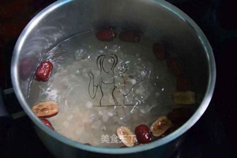 4. 锅中加水1500ml,放入薏米、红枣、芡实先煲半小时。