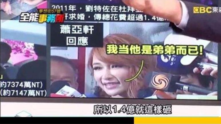 当然,靠“钞能力”猎艳无数的刘特佐也有吃瘪的时候。另根据爆料,在2011年,刘特佐为了追求女神萧亚轩,不惜斥上千万美金为她量身定做专辑、甚至据传还在迪拜高调向她求婚。但一向只喜欢小鲜肉的萧亚轩没有被金钱所击倒,果断给刘特佐发了好人卡,对外宣称“我当他是弟弟而已”。