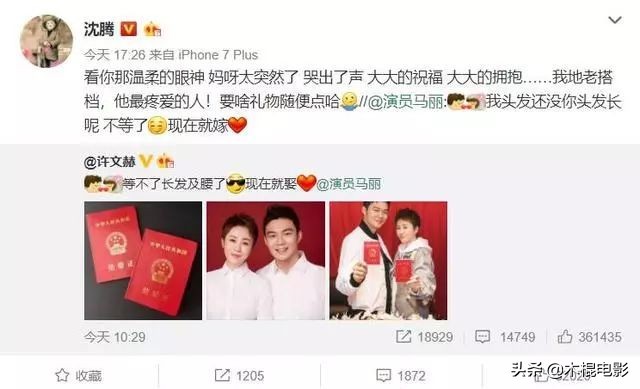 作为马丽的老搭档老朋友,沈腾自然送上了自己对马丽的祝福。