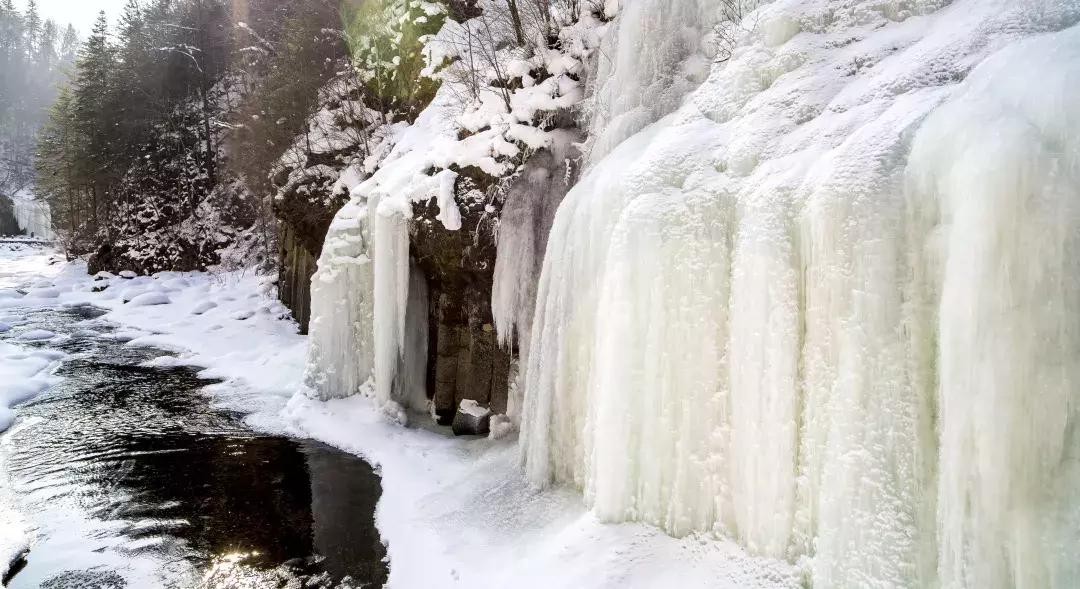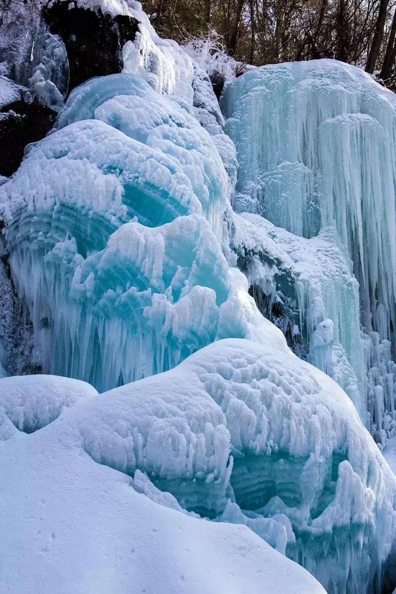 当冬日来临,大地披上了白色的披风,那些灵动清澈的瀑布、溪水变得壮观唯美,俨然一处冰雪的城堡,那是冰雪女王爱莎的童话世界。