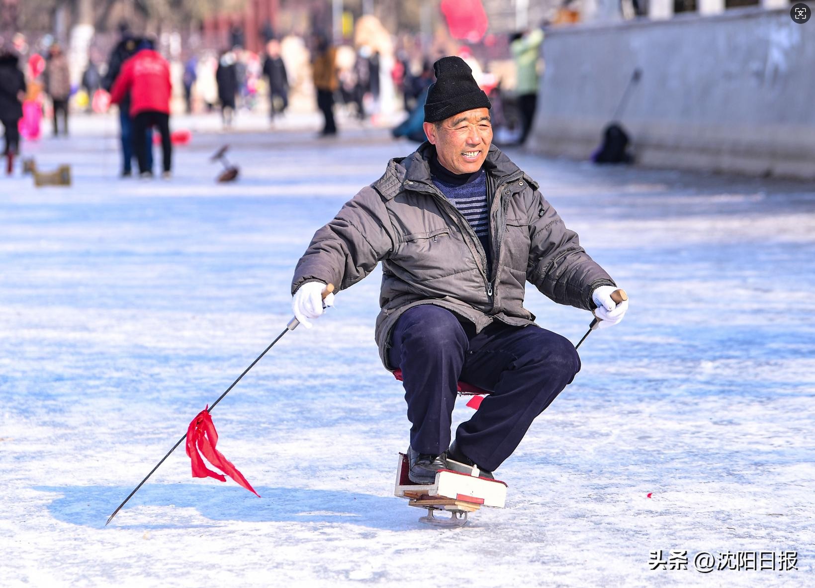 除了劳动公园,万柳塘公园冰场也是沈城历史悠久的滑冰场之一。冰场被划分成速滑、冰车、花样滑冰等几个区域。59岁的赵宇是冰场负责人,他维护这块冰场已经有35年。万柳塘冰场最有特色的运动就是被广大冰友俗称为“单腿驴”的单刀冰车,几十位“老驴友”每到冬季都会在这里畅快滑行。从小就喜欢“单腿驴”的盛继志,8年前开始制作“单腿驴”,组建万柳塘“单腿驴”冰车队,2022年北京冬奥会前夕,作为冰嬉展示团队,他们还“滑”上了中央电视台的“迎冬奥”专题节目。