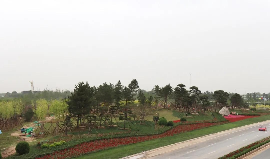 由大兴国际机场北线高速公路下来,首先映入眼帘的是“放飞梦想”主题雕塑。临空经济区主干道路生态绿地景观设计理念是打造多彩花街,营造春花秋叶、四季有景、一街一景的氛围;