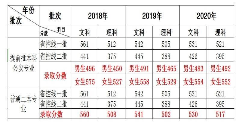 第二、学校公安类专业的录取成绩,相对其他省份类似的公安院校,还并不是特别的高,最近四年,男生最低录取成绩,都在500分一下。和很多省份那种六百来分,六百多分的成绩相比,差距太大了。