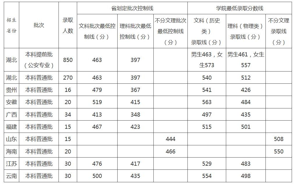 2021年湖北警官学院院校录取数据一览(各省份)
