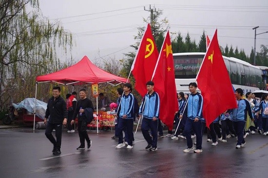 六十辆大巴,奔赴大青山。路途遥远,时有细雨,临沂四中学子以梦为马,铆足干劲,团结互助,徒步三小时,用脚步去丈量沂蒙红色大地,用行动来致敬大青山突围战中英勇牺牲的英烈们。