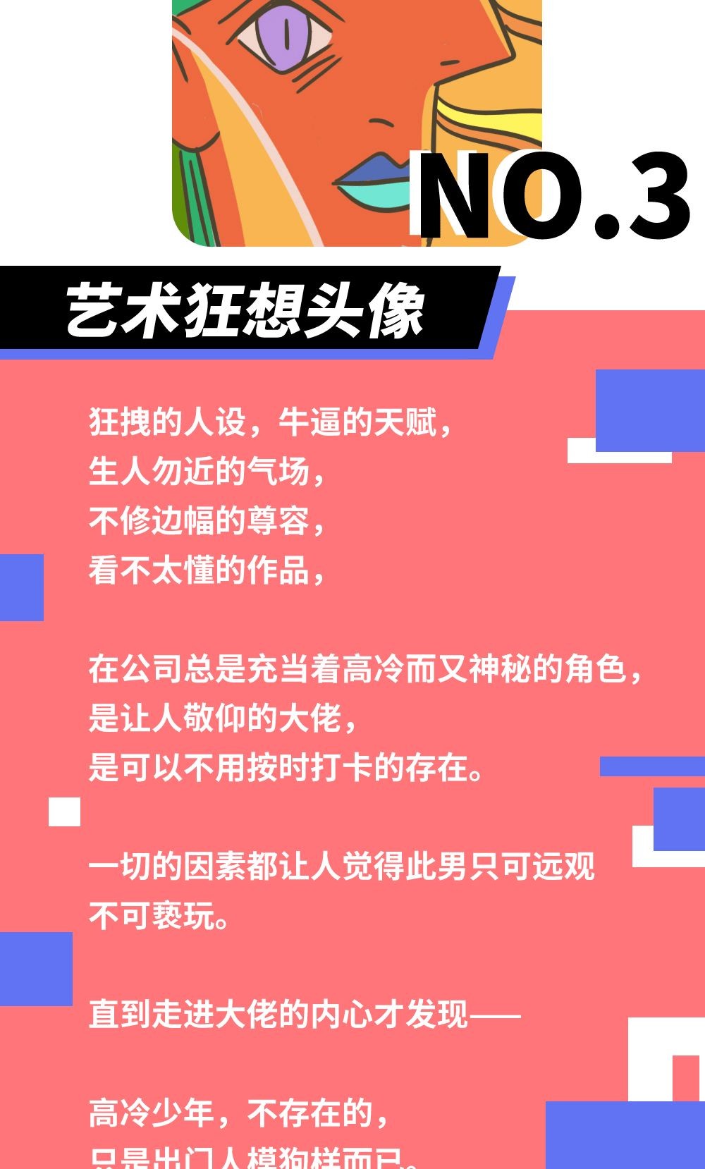 故意使用让人摸不着头脑的图案或纯粹的颜色块,意图让人觉得他充满神秘感。
