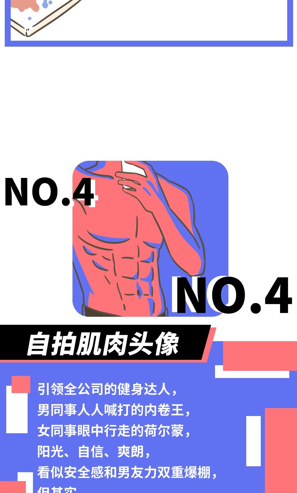炫耀完美的腹肌和壮硕的肌肉,这样的头像似乎在对外界高声宣告:“看看我多么注重外表和锻炼!”