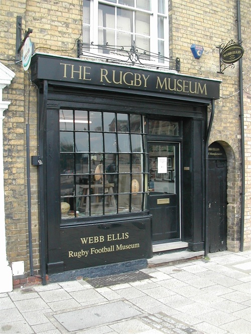 英式橄榄球(Rugby Football)运动起源于英格兰中部华威郡的拉格比镇(Rugby Town)的拉格比公学(Rugby School)。因球形似橄榄,在中国称为“橄榄球”。1876年,英格兰考古学家马修.布鲁珊法Matthew Bloxam(1805 -1888,曾是拉格比公学的学生)在驳斥橄榄球源于古代希腊带球跑的游戏这一说法时,向拉格比公学的杂志《The Meteor》(流星陨石)投书并出版声称,由不具名的信息源告诉他,将踢球改成抱球的是镇上的威廉·韦伯·埃利斯(William Webb Ellis,1806年11月24日至1872年1月24日,被认为是橄榄球之父)。