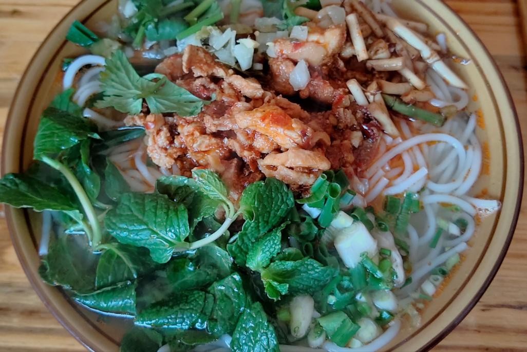 第三种就是辣鸡米线,如果我没有记错,和过桥米线一样也是从红河州传过来的。米线煮就,辣鸡肉酱放上,再添一把薄荷。做法寻常,最主要的就是靠辣鸡肉酱了。小米辣辣而不刺,鸡肉碎而入味,再加上薄荷解腻,完美成就。这可是我曾经的经典早餐选项。