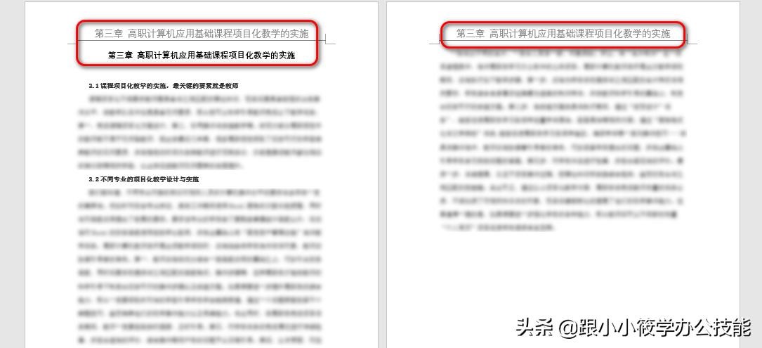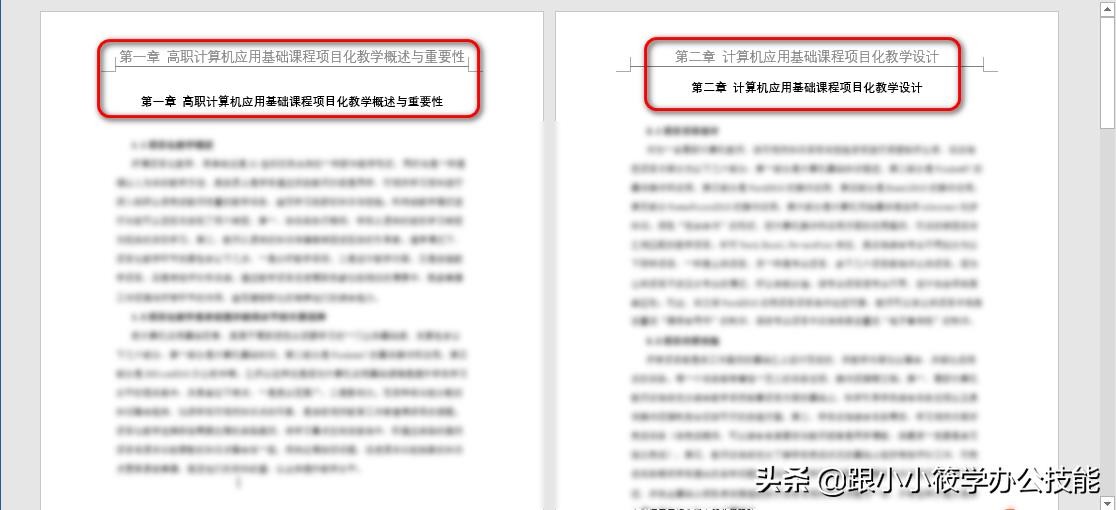 4、完成以上3个步骤之后,我们可以看到第一章的页眉显示的是第一章的标题,第二章的页眉显示的是第二章的标题,依次类推,如下图所示。