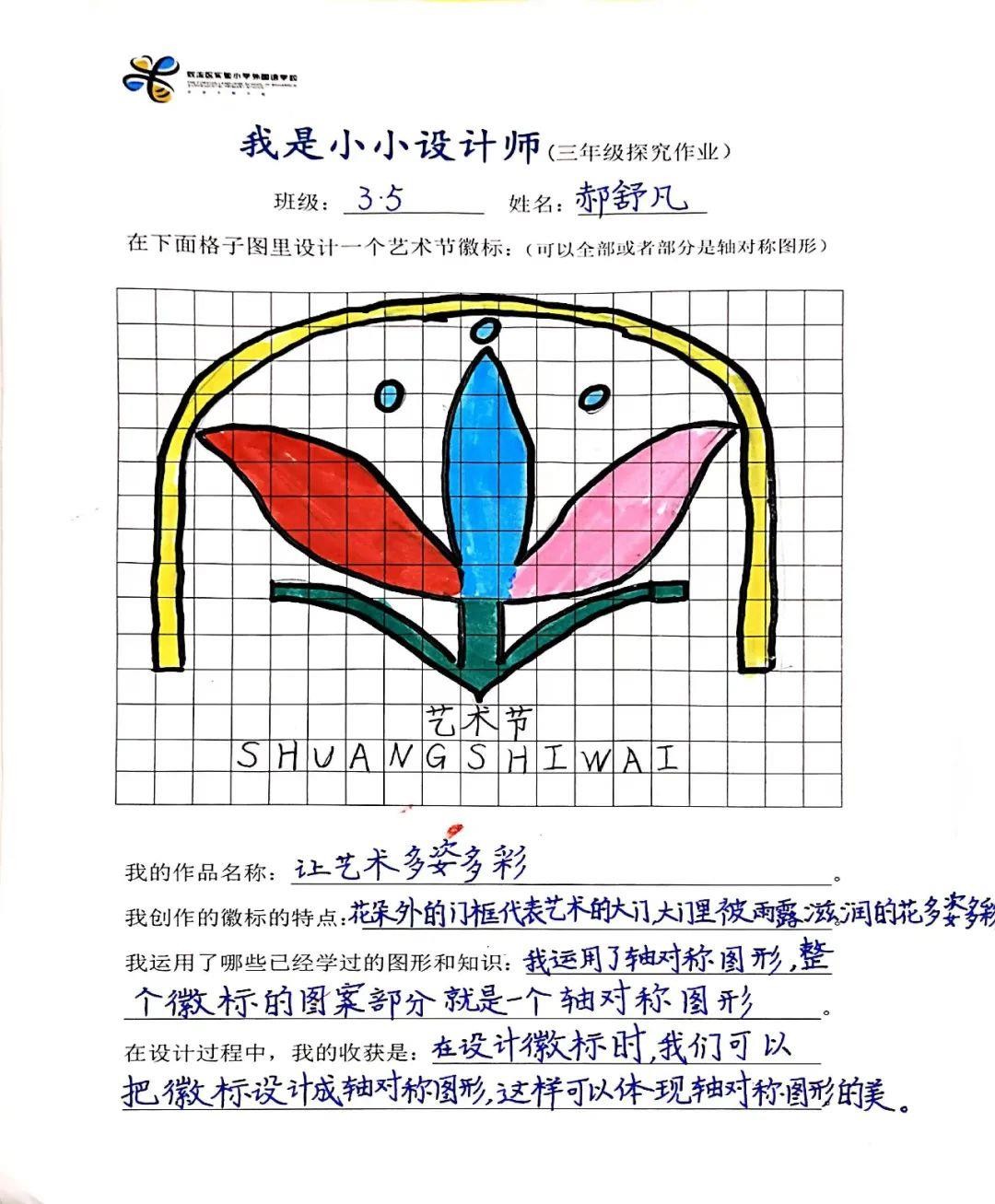 在流动的时光里,最美不过人间五月!阳光䁔暖地洒满大地,在这万物可爱的日子里,双流区实验小学外国语学校三年级迎来了“能娃学数学——艺术节徽标设计比赛”。