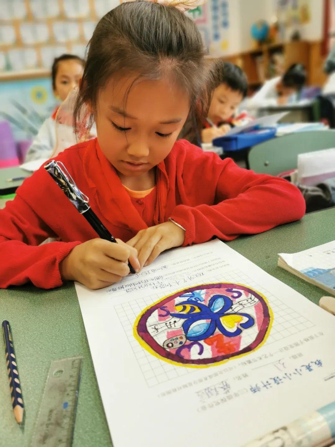 赛后,数学教师和美术老师一起进行了精心评选,从设计图式、设计涵义和色彩搭配等方面进行了评价。最终每个班分别评出了一、二、三等奖,并给获奖的孩子们颁发了奖状。