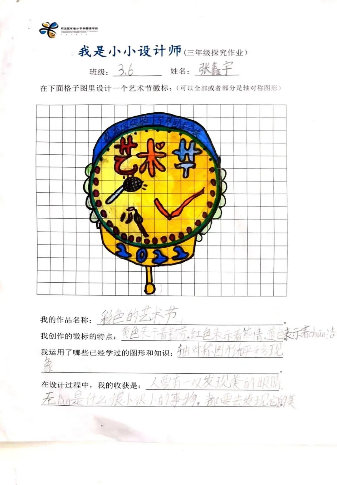 本次数学设计活动培养了学生的数学美感,巩固了本学期所学的轴对称知识,还提升了学生对于数学学习的兴趣,更是给了学生多方面展示自我的机会,营造了浓厚的融合教育的学习氛围。希望能能娃们能够在数学知识海洋中,继续快乐的感受收获的快乐!