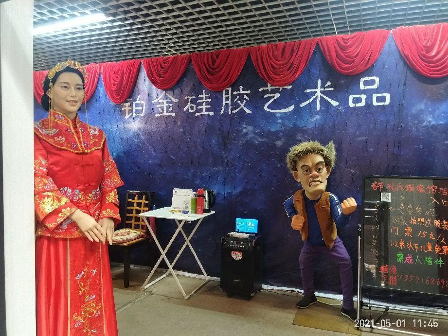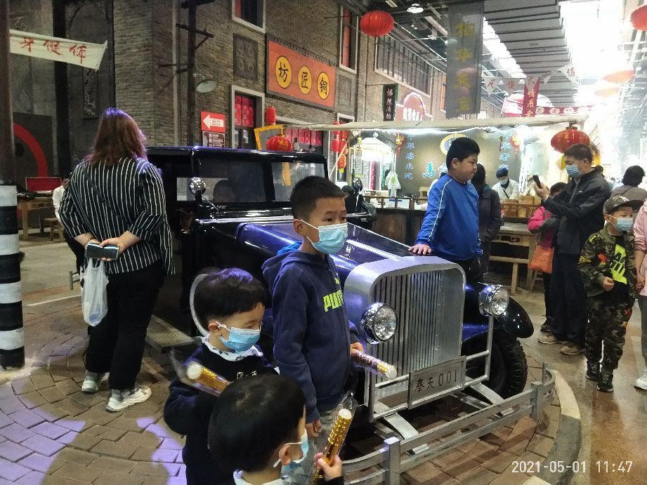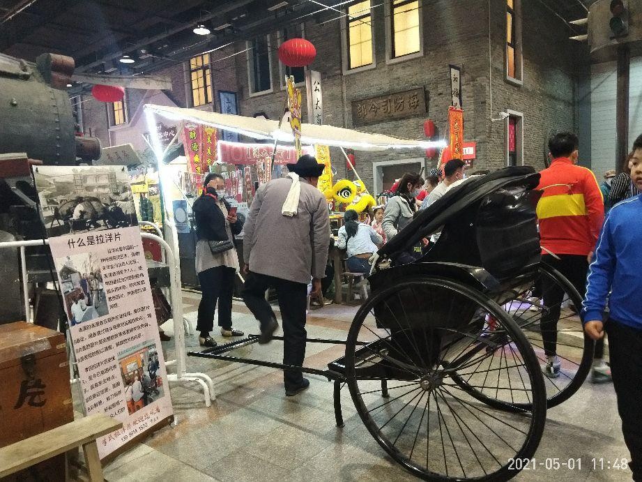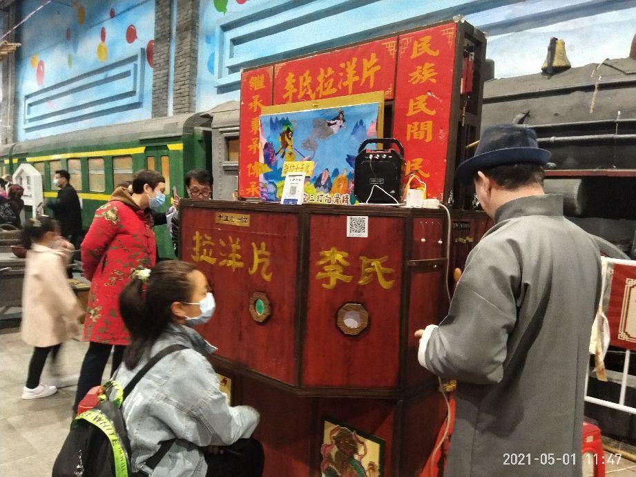 这里有搭台唱戏变戏法的,抽签儿算命的,拉黄包车的,拉洋片的。还有模拟过去的老式火车站,老式轿车,电影院等等。还有吹糖人的,现场刻章的,吹拉弹唱的,以及一些独具特色的民俗表演,展现出民国时期老北市的风土人情。