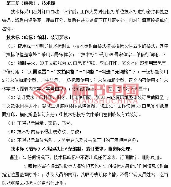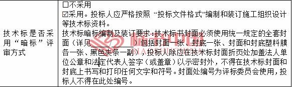 明标较普遍,暗标主要区别:1、在招标文件投标人须知中写明技术标是暗标,不得出现单位名称及其缩写和徽标,不得出现标志性代表项目等能够显露投标人单位的标识。2、详细明确投标文件字体、纸张、字号、段落等文本格式,一般还提供统一表式和封面。3、对投标文件内容编制及章回顺序有明确要求。4、对密封及密封封面有明确要求。