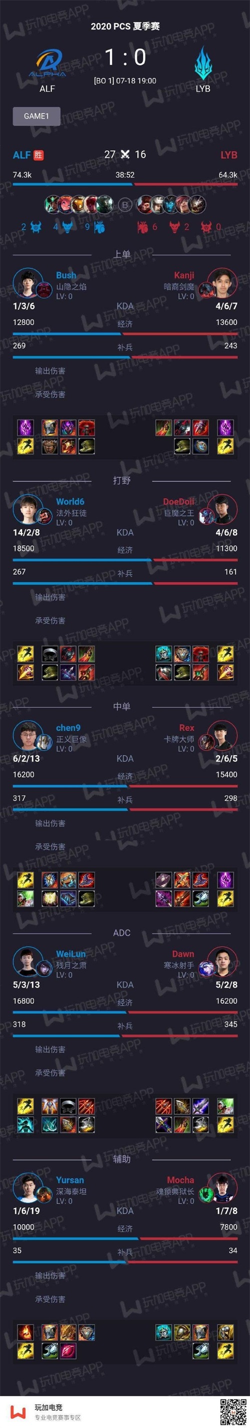 英雄联盟:World6昨日迎来PCS赛区首秀,男枪大杀四方助力ALF取胜
