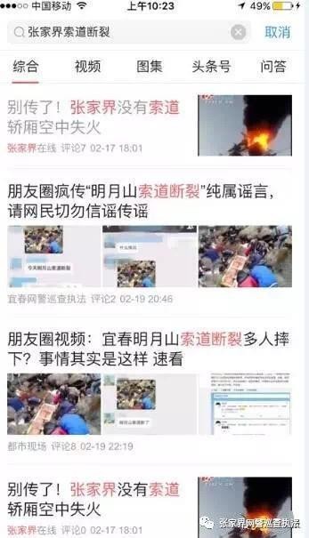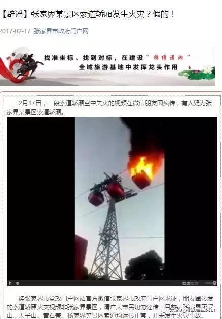 近日,微信群流传缆车失火和索道断裂的视频,发布者煞有其事的说是发生在张家界。