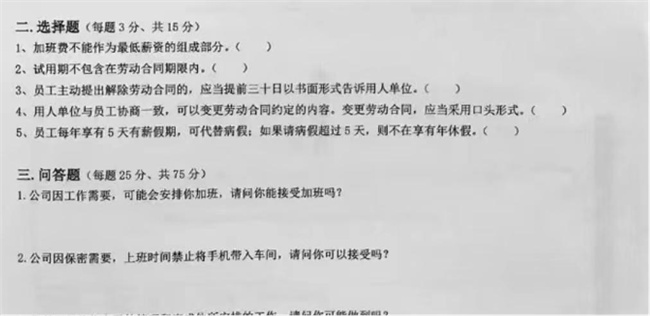 这个卷子大费周章,其实暗藏玄机,就是想看看毕业生进场后的选择,是否能够接受加班,是否能够接受不带手机上岗,对于领导的管理和安排能否服从,其实这三个问题,无论任何的毕业生,上班都会遇见的,但与其弄这样一个入场的考试大费周章,不如直接在面试环节询问清楚。