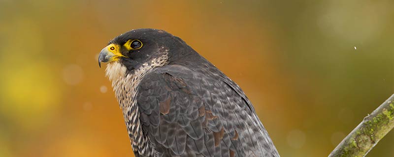 游隼是隼科、隼属鸟类,也是一种大型猛禽,共有十八个亚种。其成年后体长为38-50厘米,体重为647-825克,翼展为95-115厘米,翅膀较长,且尖,眼周呈黄色,颊有一粗著的垂直向下的黑色髭纹,从头到后颈部羽色呈灰黑色,其余上体呈蓝灰色,下体具有黑褐色的横斑,尾具有数条黑色的横带。