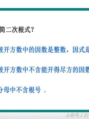 一是被开方数中不含有能开1884得尽方的能化一百因式,二是分母中不含有根号,三是根号里不含有分母。
