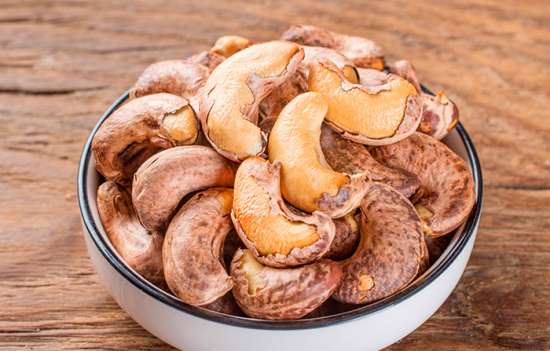 大家平时吃的是果实顶端的种子部分,颜色呈灰色或褐色,造型像一个弯曲的月牙。外面有一层坚硬的果壳,里面包裹的果仁就是大家吃的腰果。如此说来,腰果本身是有壳的,那么市场上卖的腰果为什么都是无壳呢?为什么要把壳都去掉呢?
