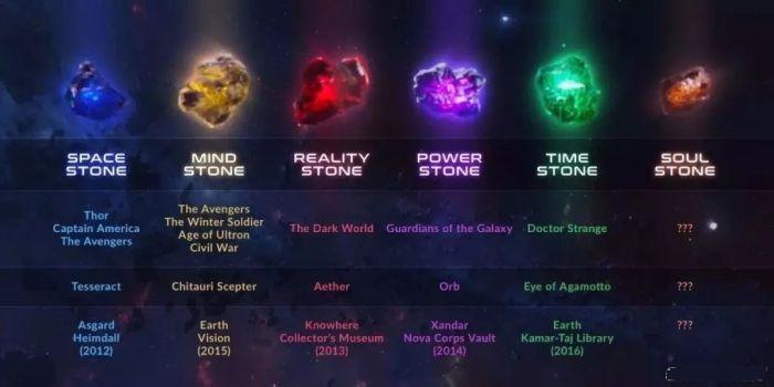 在电影中可以了解到:宇宙产生之前有六个奇点,接着宇宙爆炸成型,这六个奇点系统的残骸,融成浓缩硬块,也就是无限宝石。下面我们从电影中出现的顺序详细解读一下六个宝石的神奇之处。