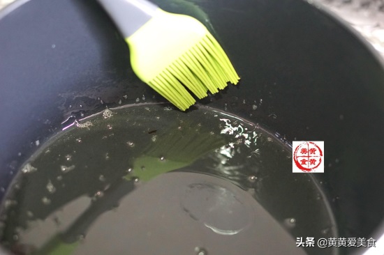 7、全程记得小火操作,慢慢的涂抹两分钟。如果有多余的油倒出来,然后继续涂抹2次。