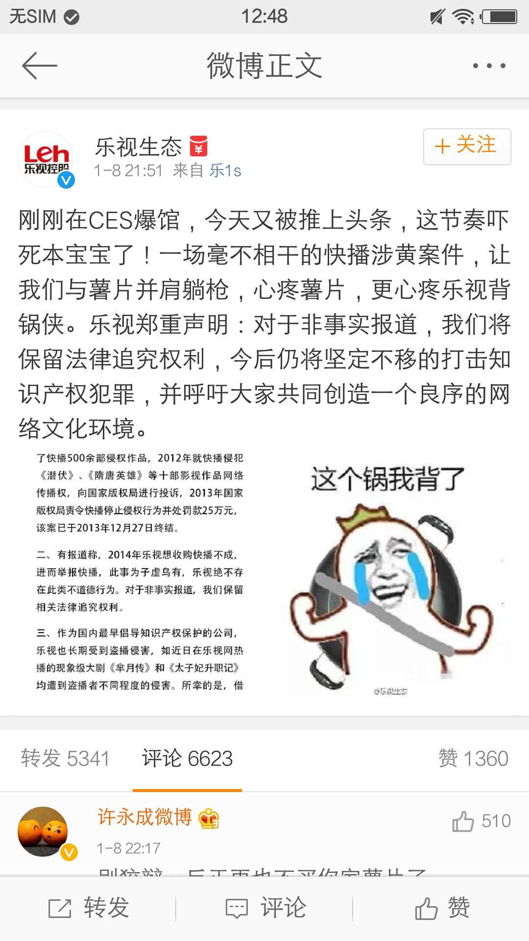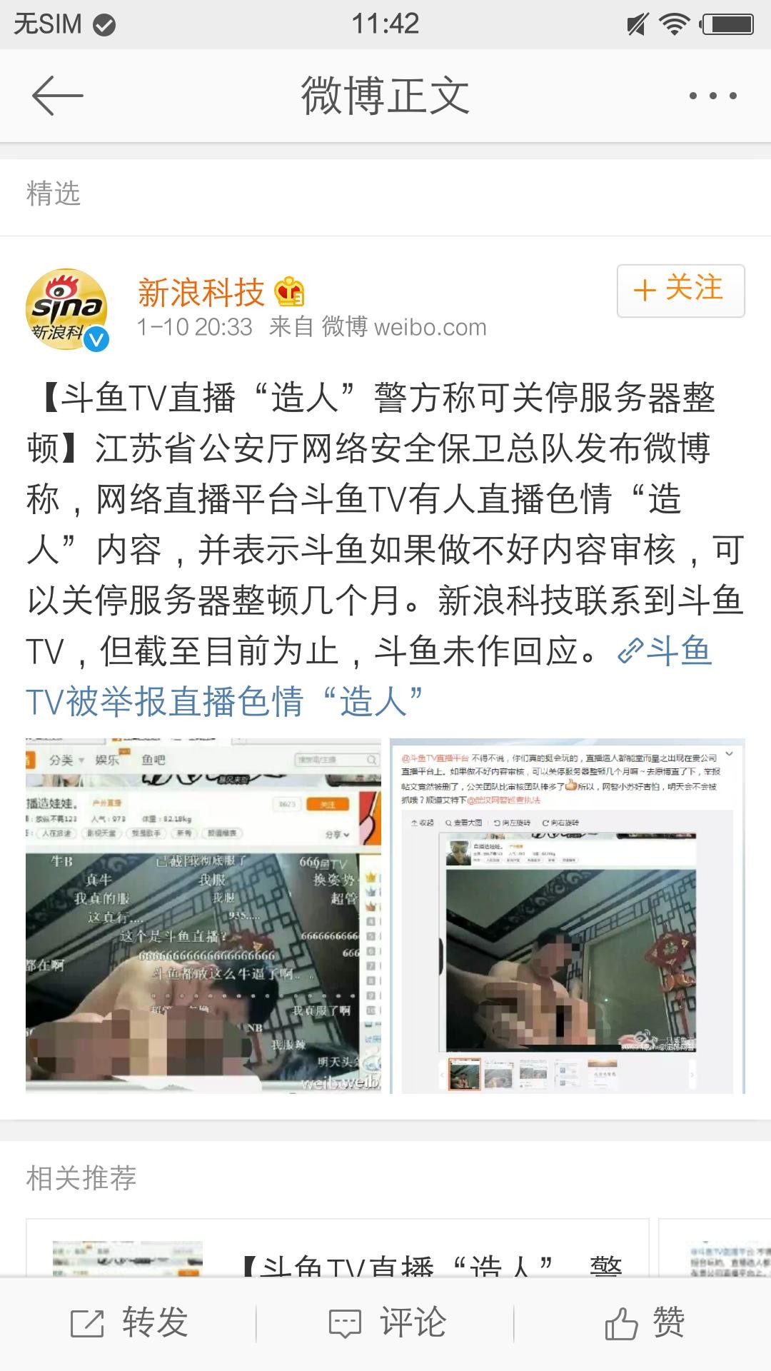 另据消息称,乐视举报的是快播的版权问题,腾讯才是举报的涉黄问题,不过奇怪的是网友对腾讯方面的“讨伐”却明显的远不如乐视。而据昨天微博消息,斗鱼TV平台直播“造人”视频,这在快播案庭审期间发生,很有点“挑战”的意味!